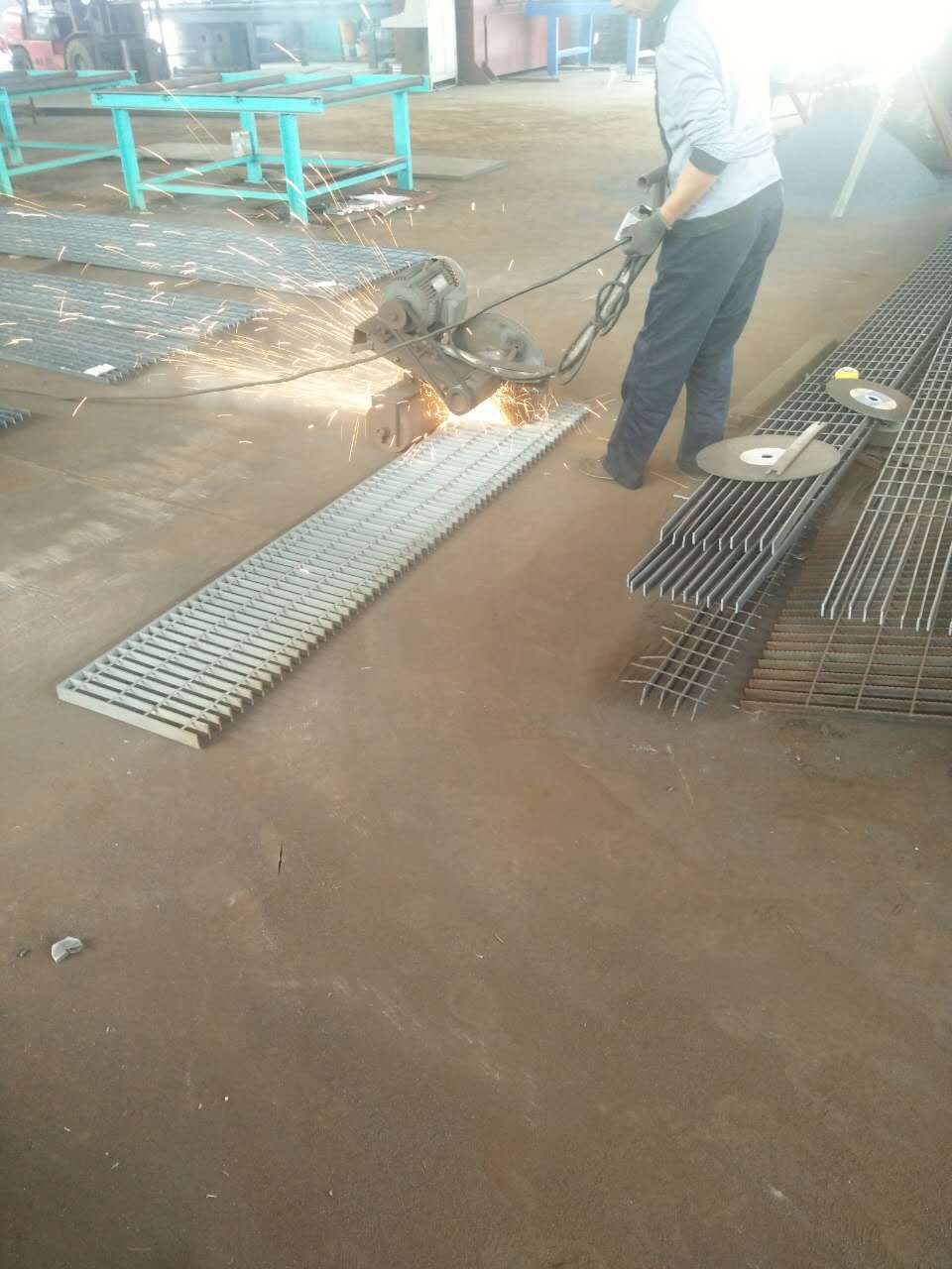熱鍍鋅鋼格板是由負(fù)載扁鋼和橫桿按一定間距經(jīng)緯排列,在高壓電阻焊機(jī)上焊接而成原板,經(jīng)切割、切口、開孔、包邊等工序深加工而成客戶要求的成品。